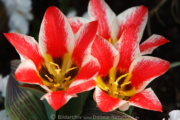 Ziertulpen Shakespeare Rotweiss Blütenduo Staubblätter Makrofoto