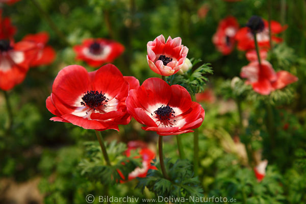 Kronen-Anemone hübsche Rotröschen Fotografie 3-farbige Rotblüten Hahnenfußgewächs Blumenflora Gartentips