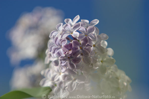Strauch blühend blau-weiss in Natur, Frühling Blumen Fotografie im Mai weisse blühende Sträucher Blüten in Frühjahr, Frühlingsblüte Florafoto, Blütenpflanzen Bildarchiv Naturfotografie. Flieder-Heimat ist Europa und Asien