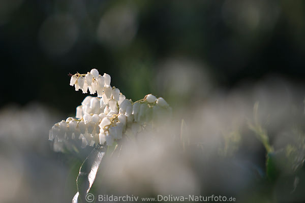 Leucothoe axillaris Fotografie, Frühlingsblüten Photo in Blütezeit, Frühjahr Florabild. Leukotoe white bell-branch flower picture, flora spring-bloom image, Leucothoe axillaris white-bloom in fuzziness