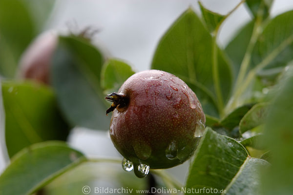 Gartenbirnen am Birnenbaum, Obstbaum, Wildbirne pyrus pyraster Kernobstsorte der Rosengewächse. Nahrung in Natur Baumblätter, Fruchtreife rundes Lebensmittel Fruchtbild.