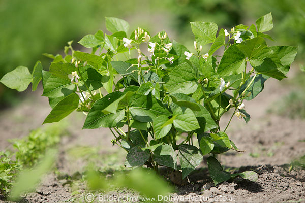 Brechbohnenblüte Fotografie in Strauchblätter Gartenbohnen grüne Nahrung und Futterpflanze