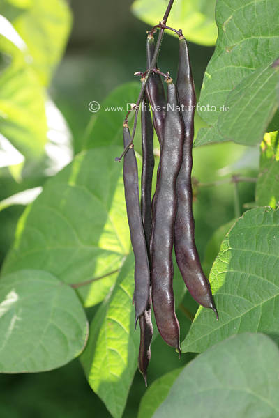 Brechbohnen hängende Pflanzenfrüchte Foodphoto in Grünblätter, Nahrungsmittel wie Futterpflanze Bio-Nahrung Gartenfoto