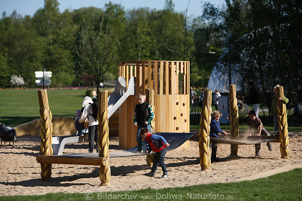 tobende Kinder auf Spielplatz, Kinder-Erlebnis auf Landesgartenschau Norderstedt 2011 in Schleswig-Holstein grünem Gartenfeldpark