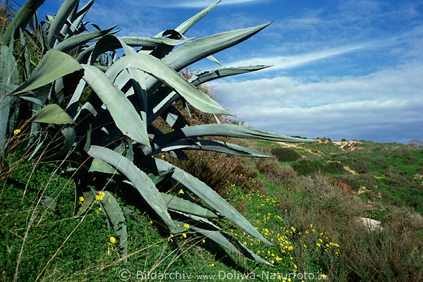 Opuntie am Wanderpfad Naturbild, Kakteen Dickblatt Fettpflanze an Meerküste Algarve Cactaceae Dornpflanze Fotografie Naturflora Portugal
