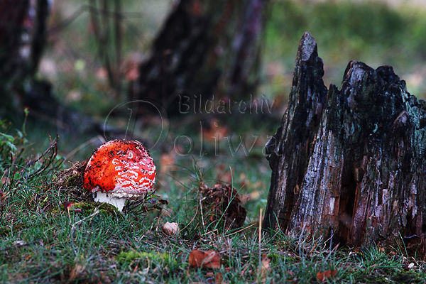 NSG, Baum, stamm, giftiger pilz im Gras & Laub, Moos der Heide, Pilze & Pflanzen in Naturbilder Fotoarchiv Galerie