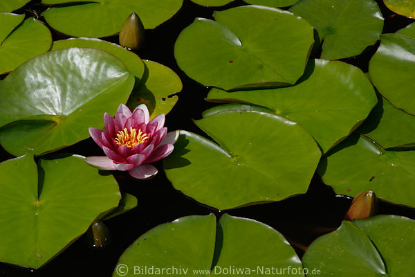 Wasserpflanze Blütezeit, Seerosenblüte lilarose Wasserblüte, weissblühende Wildblume, Gartenpflanze, Blütenpflanze Florafoto, Schwimmblattpflanze Fotografie