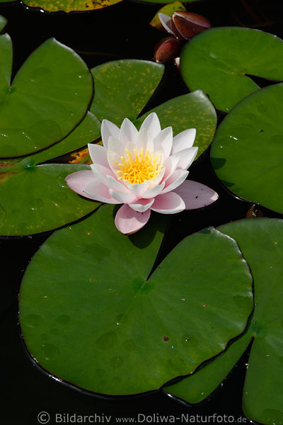 Wasserpflanze Nymphaea alba Blütezeit Naturfotografie, Seerosenblume Weißblüte mit gelber Mitte weissblühende Wildblume Blütezeit Fotografie