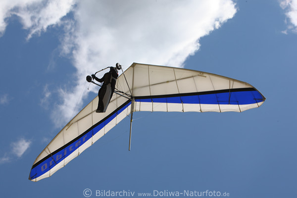 Drachenpilot Fotografie am Hängegleiter mit Thermik in Lüfte schwebend