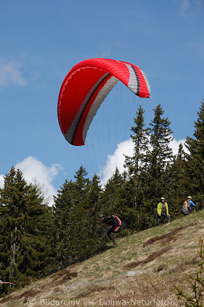 Hängegleiten Fotografie Paragliding professionell Aktionbild laufen vor Gleitschirmsegeln Flugmotiv vom Fliegertreff auf Emberger Alm in Bergen Kärntens Fluganfänger und Profiflieger Schaubild