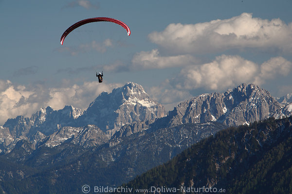 Paragliding Streckenflug über Gipfel gleitsegeln Pilot Fotografie in Lüften über Kärntens + Italiens Berggipfel