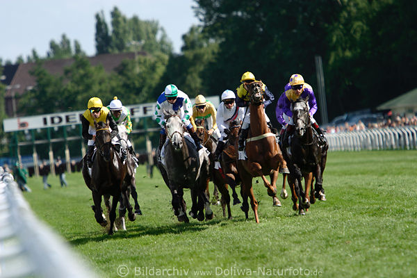 54962  Pferdetruppe Galopplauf Turfrennen Fotografie Zielgerade von HansaPreis 7-te Hauptrennen Sweet Wake mit A. Starke in Führung, mittig Near Honor mit Jozef Bojko, links Malinas mit W. Mongil, BMW-GaloppDerby Turffoto