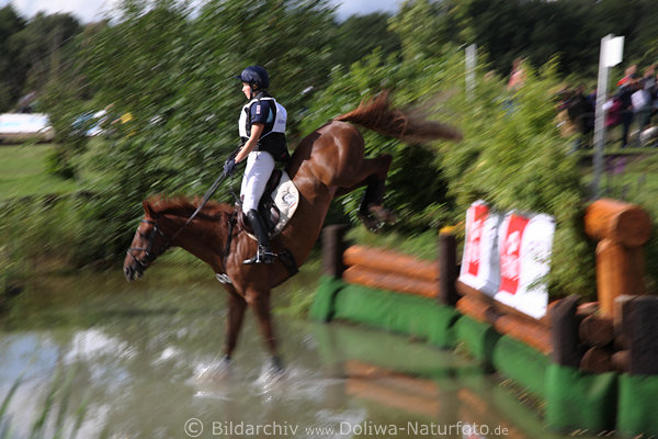 Reiten Crossrittfoto Schenefeld Grüngelände mit Wasser Vielseitigkeit Sportfotografie Deutsche Meisterschaft CIC 3*
