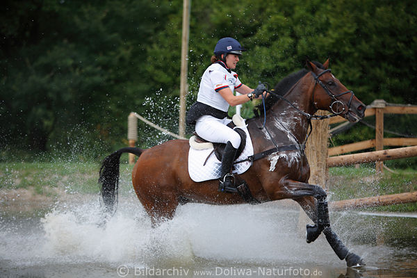 Vielseitigkeit Fotografie auf Englands Pferd Action Packed Ritt in Wasserspritzer beim Geländereiten in Bad Segeberg Junioren EM 2010