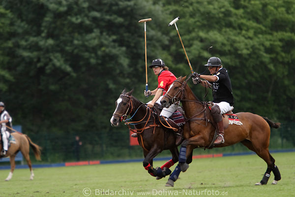 Fotoarchiv Sportfoto, Poloreiter actionfoto vom Polomatch Chukker um Platz 3. beim Berenberg Polo-Derby 2007 in Hamburg Klein Flottbek, Reiterposter & Pferdeposter nur hier erhältlich, Polopferde in Aktionfotografie, Polospieler mit Polostick in Galoppduell zu Pferd