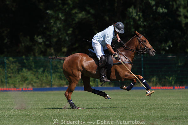Galoppritt über Sattel stehend Aktionsszene Polo+10 Reiter-Spieler Sportbild aus Hamburg IDEE Poloderby 2010.