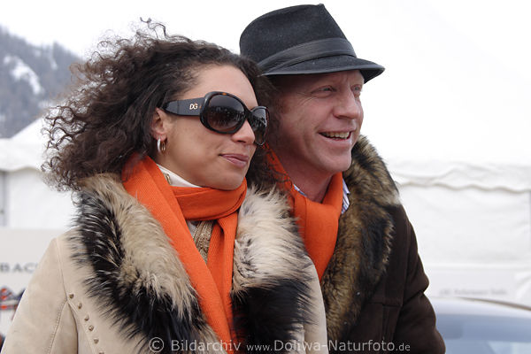 fröhliches Paar Fotografie vom Poloevent auf Schnee in der Schweiz