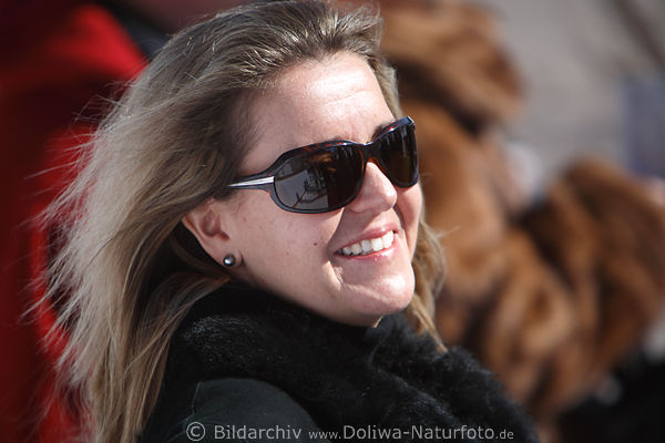 charmante Polobesucherin in Schweizer Wintersonne Fotografie Bericht vom Winterpolo auf Schnee