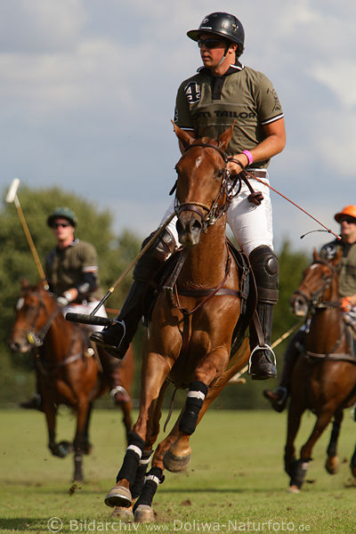 Polospieler Aktionportrait zu Pferd, Nahbild vom Superstar des Poloteam “Tom Tailor”, Polosport an Ostsee: PoloOpen Timmendorfer Strand 2008 Polobild, Polospiel turnier in Hemmelsdorf am Gestüt “Hof am See”.