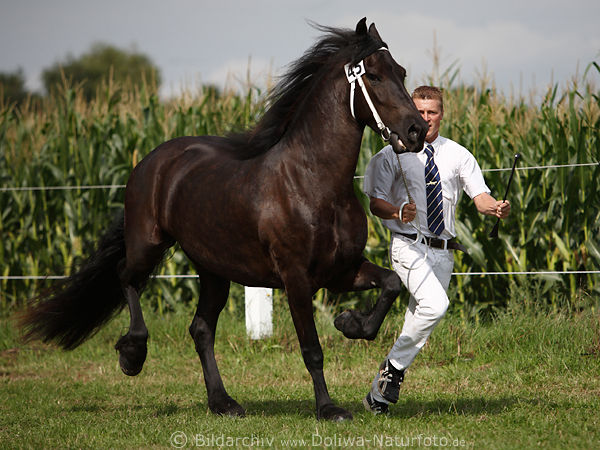 Schwarzfriese Porträt von Präsentation, Fotografie am Maisfeld bei Zuchtschau in Behringen