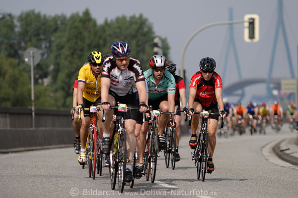 Sportbild von Cyclassics in Hamburg, Radtour mit Rennrad Foto im Freihafen, Radrennfahrer bei Radrennen, Strassenradrennen auf Strecke, Radsportler Sportfoto, Radler Sportwettbewerb. Cyclassics bicycle racing photo from Hamburg