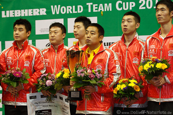 World-Team-Cup Sieger Männerturnier weltbeste Pingpongspieler in Bild von links Wang Hao, Ma Lin, Ma Long Coach Liu Guoliang Xu Xin und ?