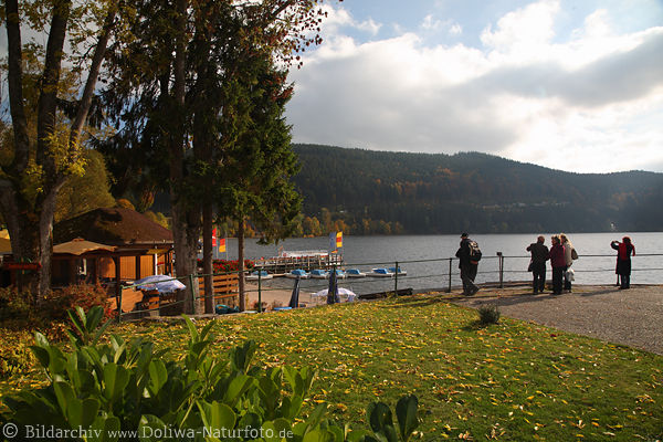 Schwarzwald Bergsee Urlaubsidylle Fotografie Touristen Attraktion Foto am Seeufer Kurort-Café Bilder vom Titisee Archivaufnahme